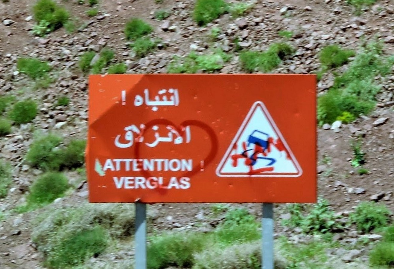 Et puis nous sommes partis vers l’Atlas et, croyez-moi, en plein mois de juin, alors qu’il fait vraiment très chaud, croiser ces panneaux, ça interpelle ![]()
