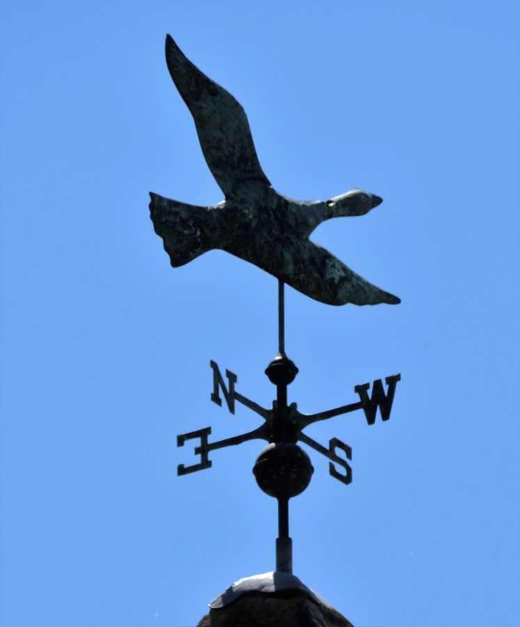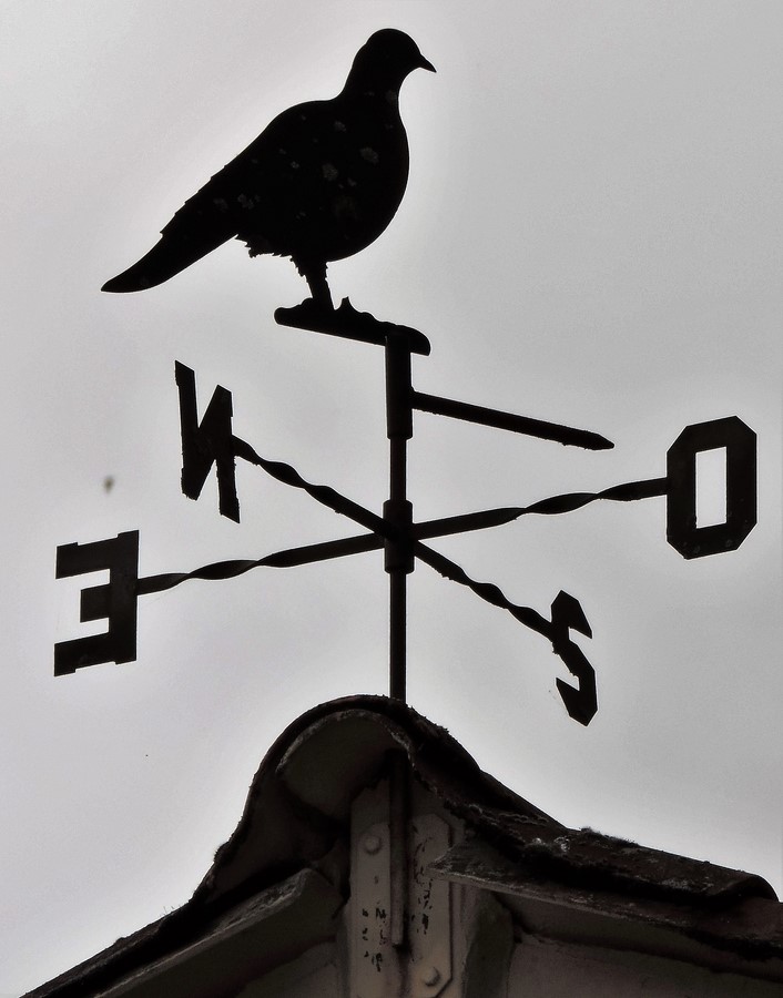 On s’envoie à nouveau en l’air, je veux dire sur les toits, pour y voir de bien jolis animaux à plumes. Que ce soit en girouette ou autre garniture de toit, c’est toujours un plaisir à mes yeux de les débusquer.
