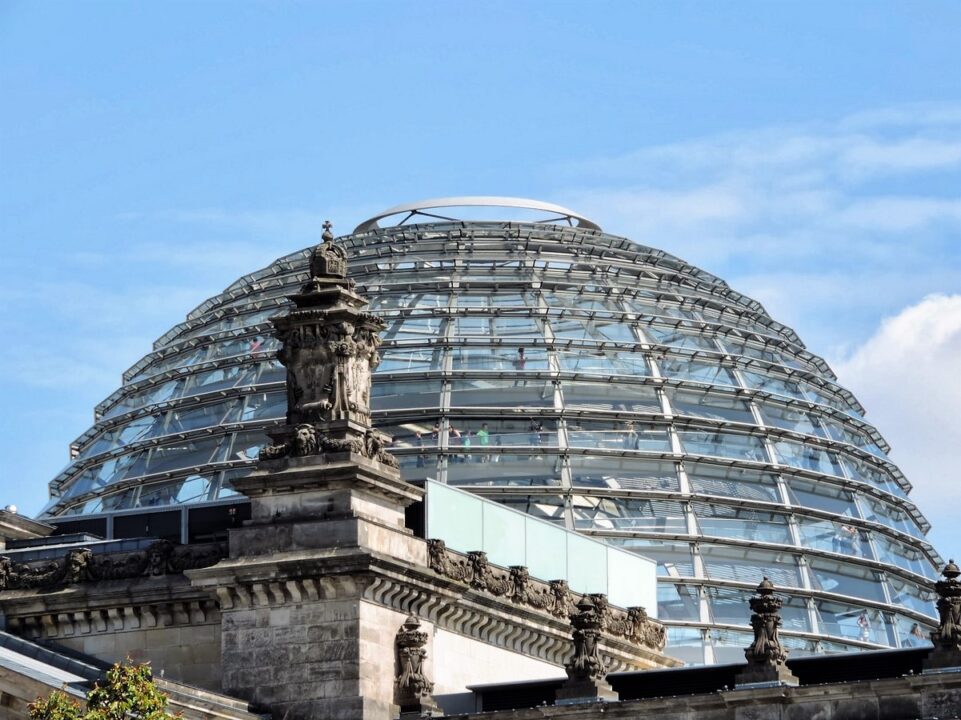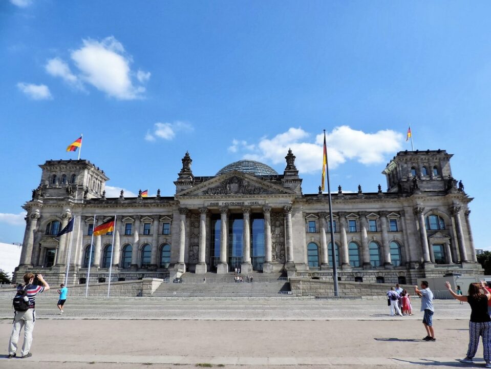 Le Palais du Reichtag qui abrite le Buntestag, l’Assemblée parlementaire qui élit le chancelier fédéral ou la chancelière (depuis le 22 novembre 2005, Angela Merkel).