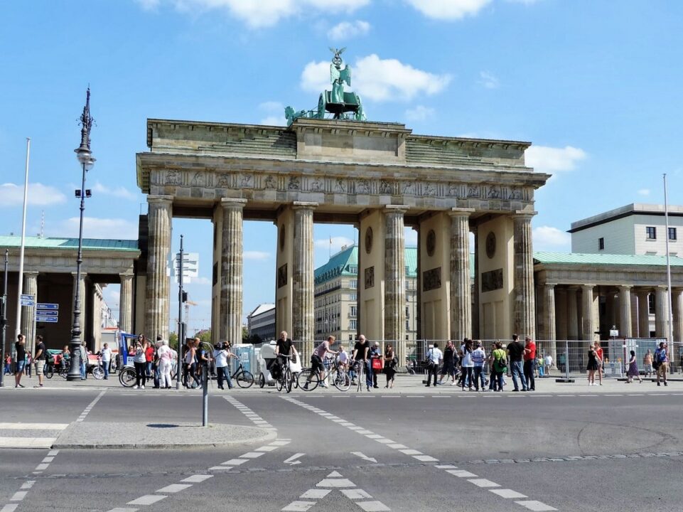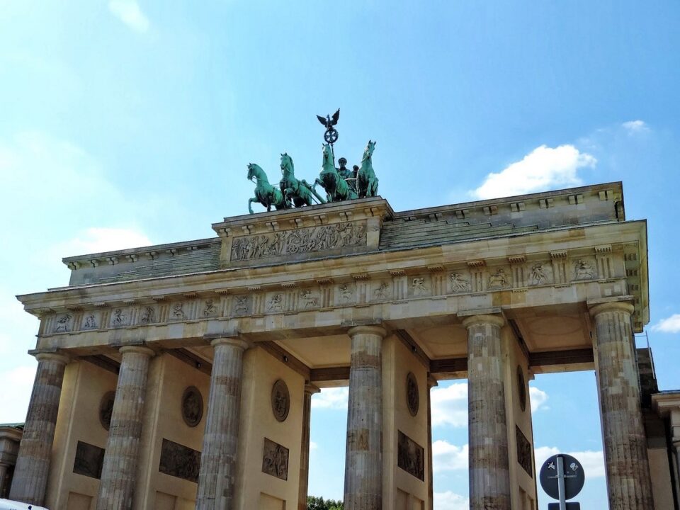 La Porte de Brandebourg, à coup sûr le monument le plus représentatif de la ville de Berlin. Ce monument a aussi symbolisé la division de la ville puisqu’il faisait partie intégrante du mur de Berlin.