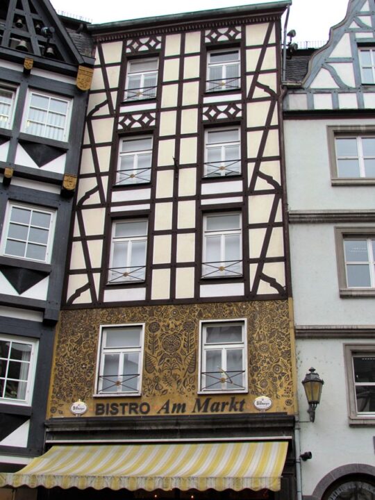 La ville de Cochem doit son charme, entre autres, aux traces laissées par le Moyen-Âge et ses maisons à colombages, ses ruelles étroites et tortueuses et la belle promenade sur les rives de la Moselle, où l’on déguste les crus de la région. De la place du marché, d’étroits et anguleux escaliers montent au couvent des Capucins construit sur un surplomb de la montagne vers 1630 et qui héberge aujourd’hui le centre culturel de Cochem et le château.(source)