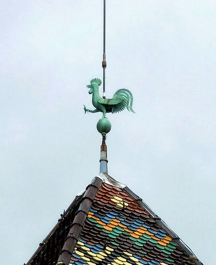 J’évite en général de photographier les coqs d’église parce que je trouve qu’ils se ressemblent tous mais, malgré tout, on trouve des coqs très différents sur les toits, d’église ou de maison d’ailleurs.